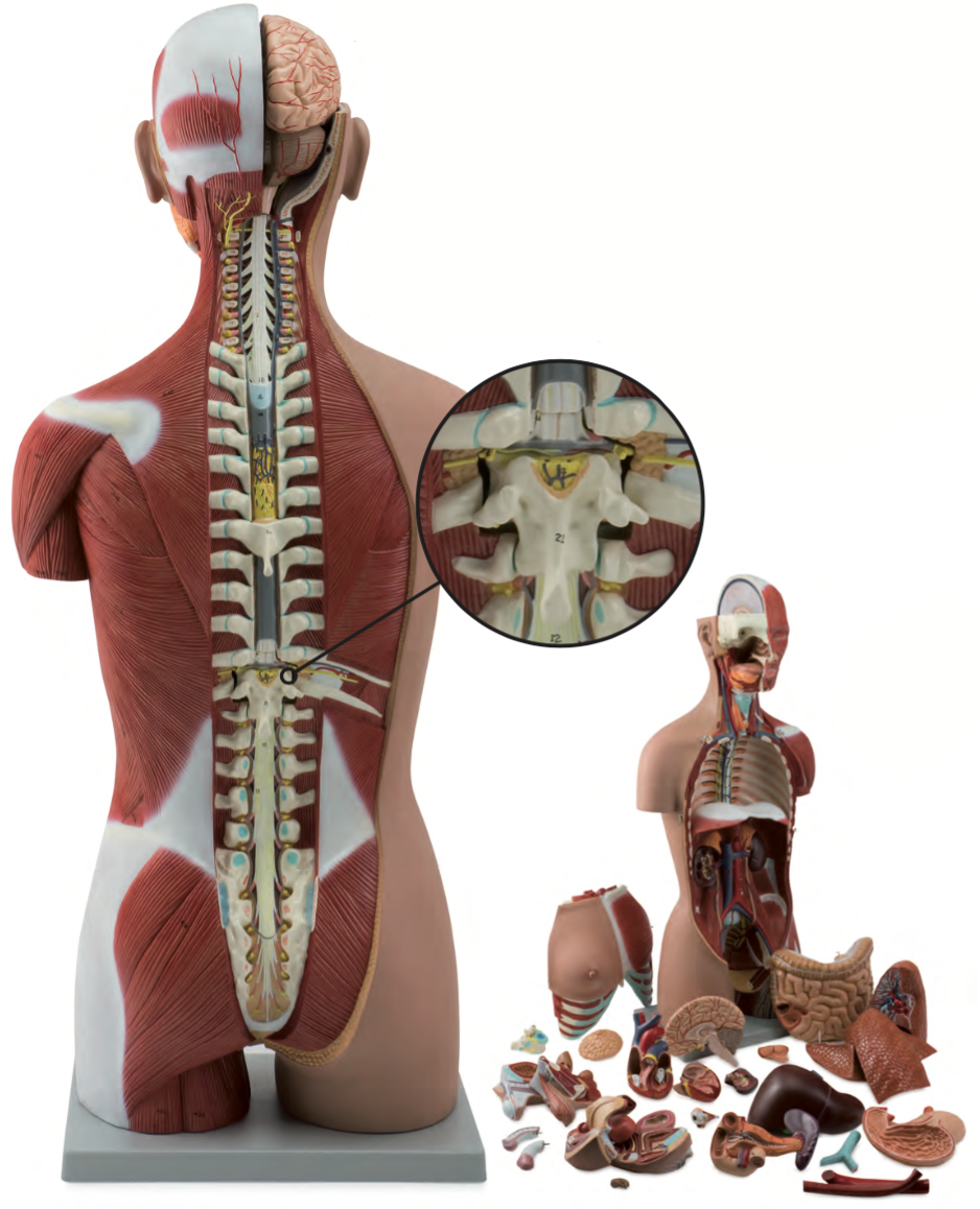 ■ 功能:85CM自然大人體兩性開背豪華肌肉軀干,共29部件,男女生殖器可互換,詳細(xì)的再現(xiàn)內(nèi)部器官細(xì)節(jié)構(gòu)造和人體各大系統(tǒng)結(jié)構(gòu)以及人體軀干及背部肌肉的基本結(jié)構(gòu),并且在每一個(gè)器官或結(jié)構(gòu)部位都標(biāo)示了數(shù)字,結(jié)合說(shuō)明書有利于精確地認(rèn)識(shí)人體解剖學(xué)的器官結(jié)構(gòu),適于教學(xué)研究的目的,模型部件包括:大小腦(1),眼球(1),左右肺(4),食管(1),氣管(1),肝和膽囊(1),胃(2),心臟(2),胰脾十二指腸(1),腎蓋(1),男性內(nèi)外生殖器(4),女性內(nèi)外生殖器(4),大腸小腸帶盲腸蓋(2),軀殼(1),胸椎(1),胸蓋(帶肋骨)帶胸腺(2),安放于塑料座上。