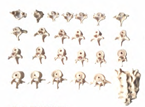 ■ 功能:顯示游離的脊柱骨的形態(tài)和外觀,共26塊,頸1-7、胸1-12、腰1-5、骶尾各1;