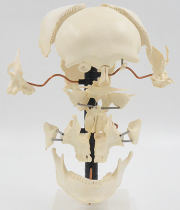 ■ 功能:模型顯示分解的22部件顱骨形態(tài)結(jié)構(gòu)串制于鐵絲上,用于說明22部分顱骨的名稱;■ 材質(zhì):環(huán)保PVC材料,環(huán)保油漆