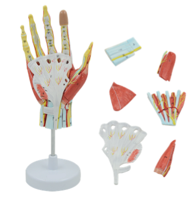 ■ 功能:此模型為自然大,手局解模型,展示了手部的主要肌肉,韌帶,神經和血管分布;