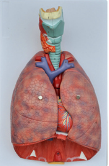 ■ 功能:由兩部分組成的模型真實(shí)地再現(xiàn)了人類(lèi)肺部的所有外部特征,是完整人類(lèi)呼吸系統(tǒng)的真人大小的復(fù)制品。它由7個(gè)部分組成,包括喉(沿矢狀面解剖)、肺(沿額面解剖)和2個(gè)部分的心臟;