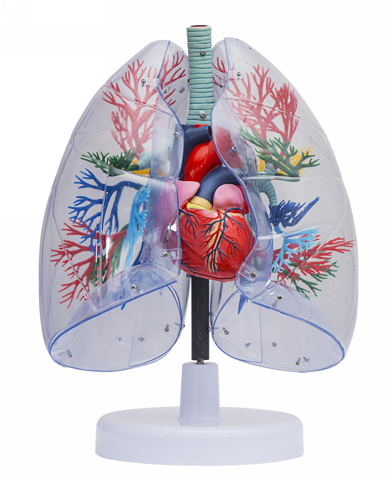 ■ 功能:由心臟、大血管(主動(dòng)脈、上腔靜脈)、氣管支氣管樹和透明肺段等4個(gè)部件組成,并顯示心臟和大血管、透明肺、氣管、支氣管樹以及肺段支氣管相互毗鄰關(guān)系。右肺顯示十個(gè)段、左肺八個(gè)段,氣管和支氣管,從透明肺殼由外向內(nèi)可以觀察支氣管樹的分布情況,肺門顯示左、右肺血管和支氣管的毗鄰關(guān)系;