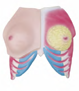 ■ 功能:顯示成年女子未授過乳的乳房,右側示乳房的外形,中心為乳頭,周圍為乳暈及其乳暈腺,兩側解剖面示乳房的構造、乳腺、乳房小葉、輸乳管、輸乳管竇、輸乳孔以及乳房脂肪等;