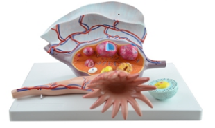 ■ 功能:模型展示了人類輸卵管和卵巢的解剖結(jié)構(gòu)。卵泡顯示在不同的成熟階段。從初級卵泡到白念珠菌體。初級卵泡是橫截面,以說明內(nèi)部結(jié)構(gòu),卵母細胞,透明帶和顆粒細胞;
