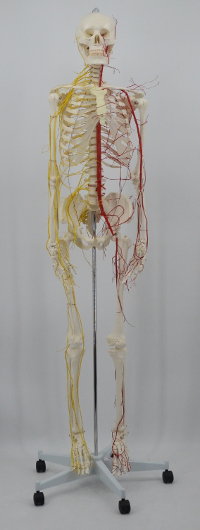 ■ 功能:此模型為正常大人體骨骼附神經(jīng)血管模型,詳細的展示了人體骨骼細節(jié),手工穿制,持久耐用。頭蓋,頭顱,下頜,手臂和腿可分離;