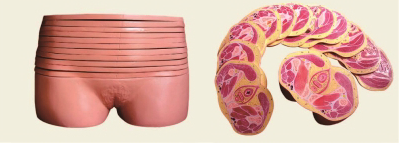 ■ 功能:顯示女性盆部水平斷面解剖模型結(jié)構(gòu)和形態(tài),產(chǎn)品自髂嵴高度至大腿根部自上而下作水平切13片;