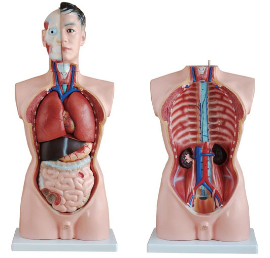 ■ 功能:這是一款標準尺寸的男性軀干模型,手工噴漆,精心安裝,效果逼真。分成19件:軀干,頭(2件),腦,肺(4件),心,氣管,食管和主動脈,橫膈膜,胃,十二指腸帶胰腺和脾,腸,腎,肝和膀胱(2件),安放于塑料座上。