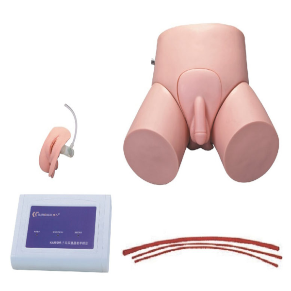 ■ 男性導(dǎo)尿:可以提起陰莖,模擬尿道海綿體部恥骨前伸直,導(dǎo)尿管插入和通過時(shí),有綠色燈光顯示(導(dǎo)尿管未通過時(shí),綠燈不亮);插入20厘米左右到達(dá)膀胱時(shí),有紅色燈光顯示,同時(shí)有“尿液”自導(dǎo)尿管排除,約200毫升